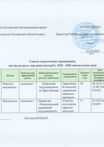 Список педагогічних працівників які підлягають черговій атестації у 2025 -2026 році.
